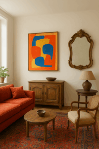 – **Modern Contrast:** Hang abstract or minimalist contemporary art next to antique furniture.
